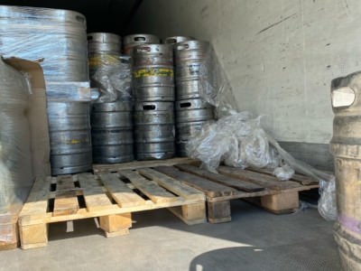 Разгрузка а/м Газель с пивными кегами.